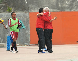 | English Coach Robers sharing his happiness |